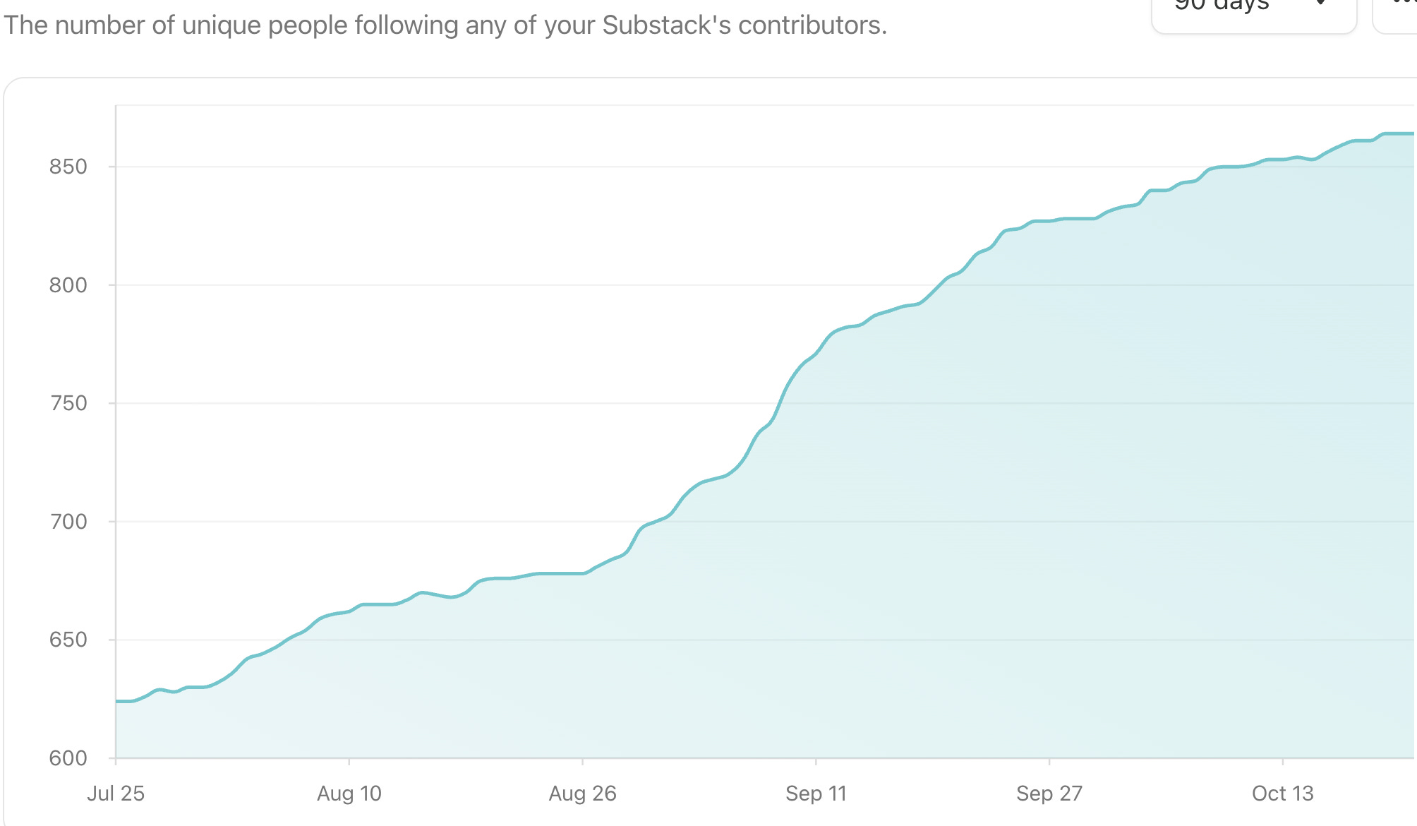 I have 266 subscribers to Good Grief and another 259 to my Gratitude Project newsletter. I have 896 followers in total here on Substack, whatever that means. On Facebook I have 1,403 followers across two accounts, 1,179 across two accounts on Instagram, 1,136 on LinkedIn, and 77 on Medium. I write in multiple directions most days about a range of things. I don’t do a great job of promoting my own work, and I make almost no money from it.